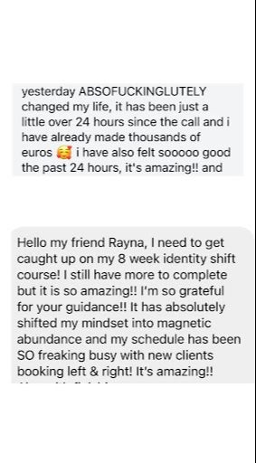 With a background in acting, deep identity rewiring and a luxury frequency that can’t be faked, Rayna is the only mentor blending power, precision, performance and multidimensional energetic truth at this level.